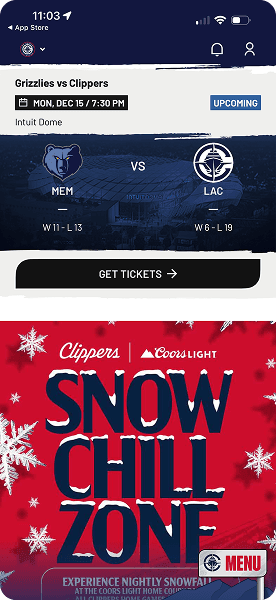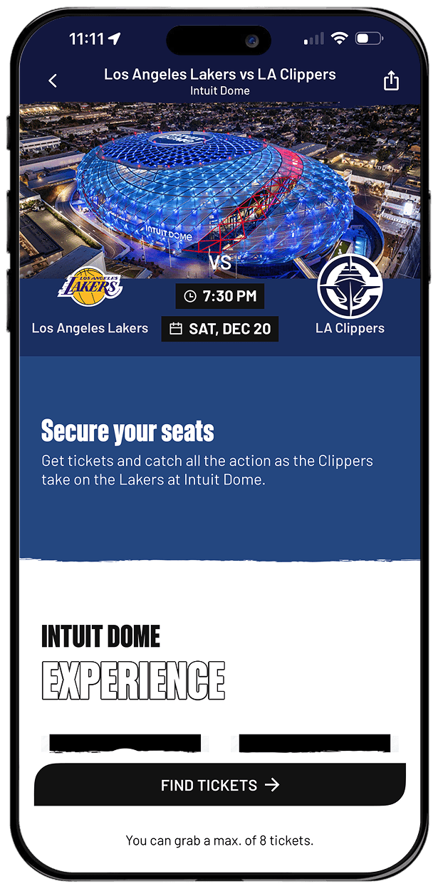 The redesign fundamentally changed fan interaction, successfully powering the Intuit Dome’s "Zoom Thru" commerce and contributing to retail speeds 4 to 8 times faster than industry standards. We created a brand-flexible system that resonates with 400,000+ fans. The result is a world-class digital gateway that feels deeply connected with the Clippers Nation.