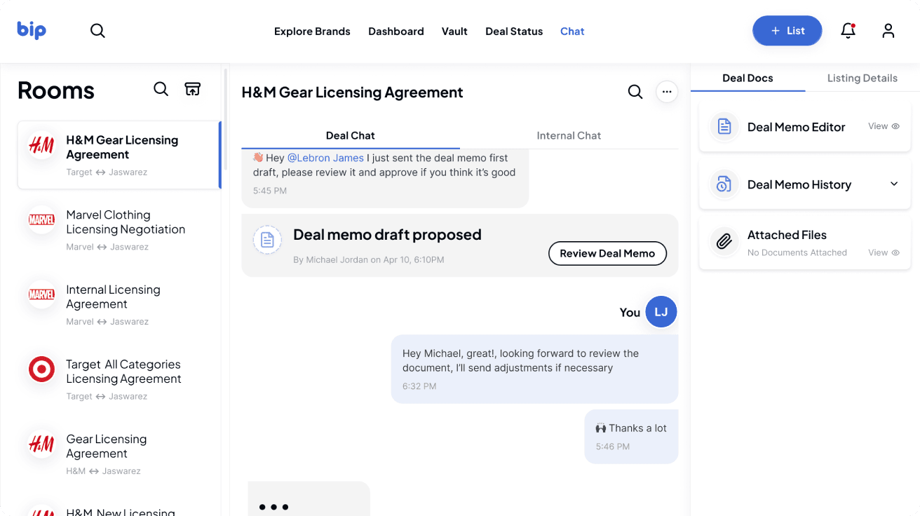 Version 2.0 helped transforming the platform into a high-trust digital marketplace that grew to serve over 600 brands and licensees across 25+ countries. The 'Deal Room' conversational experience replaced fragmented email threads with an integrated, real-time negotiation hub.
